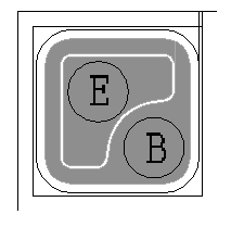 芯片背極為集電極,基極與發射極的鍵合點位置見右圖